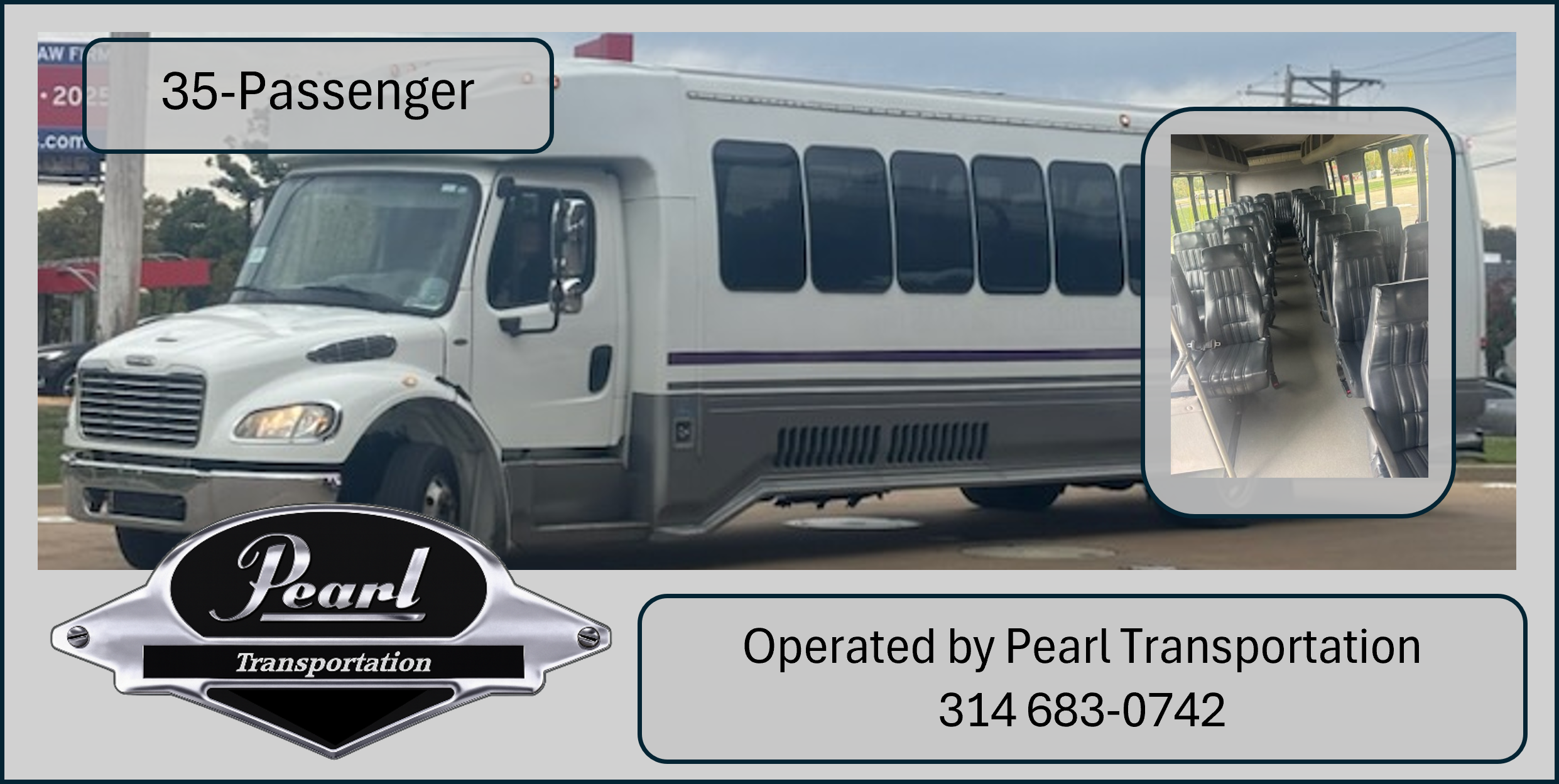 Classy Elegance describes our 35-Passenger Shuttle with forward-facing seats. Perfect for Wedding Guest Transportation and Corporate Events. This bus contains a Baggage compartment for overnight destinations